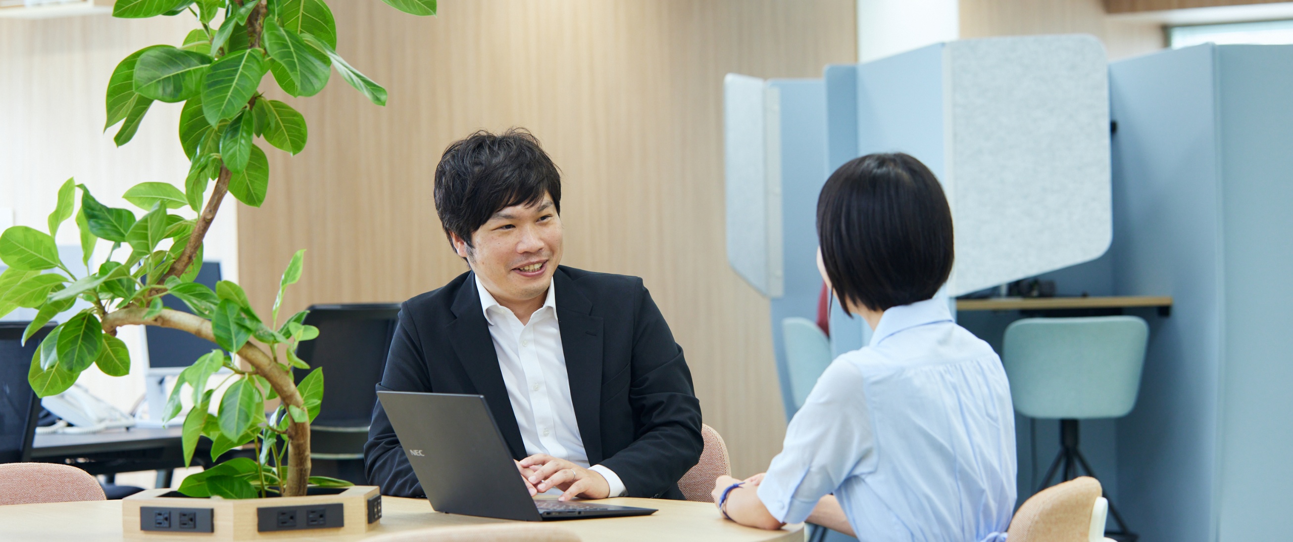 決め手になったのは、最終面接の日時が他社と重なってしまい、人事の方に相談したときの柔軟な対応でした。また、当時の新卒の採用枠は営業・SE・保守の3職種でしたが、企画職に興味があることを伝えると、入社時の配属やジョブローテーションで希望が叶う可能性についても丁寧に説明してくれました。このような経緯から人事の「個」を大切にする姿勢を感じ、ここなら安心して働けるだろうと思い入社を決めました。